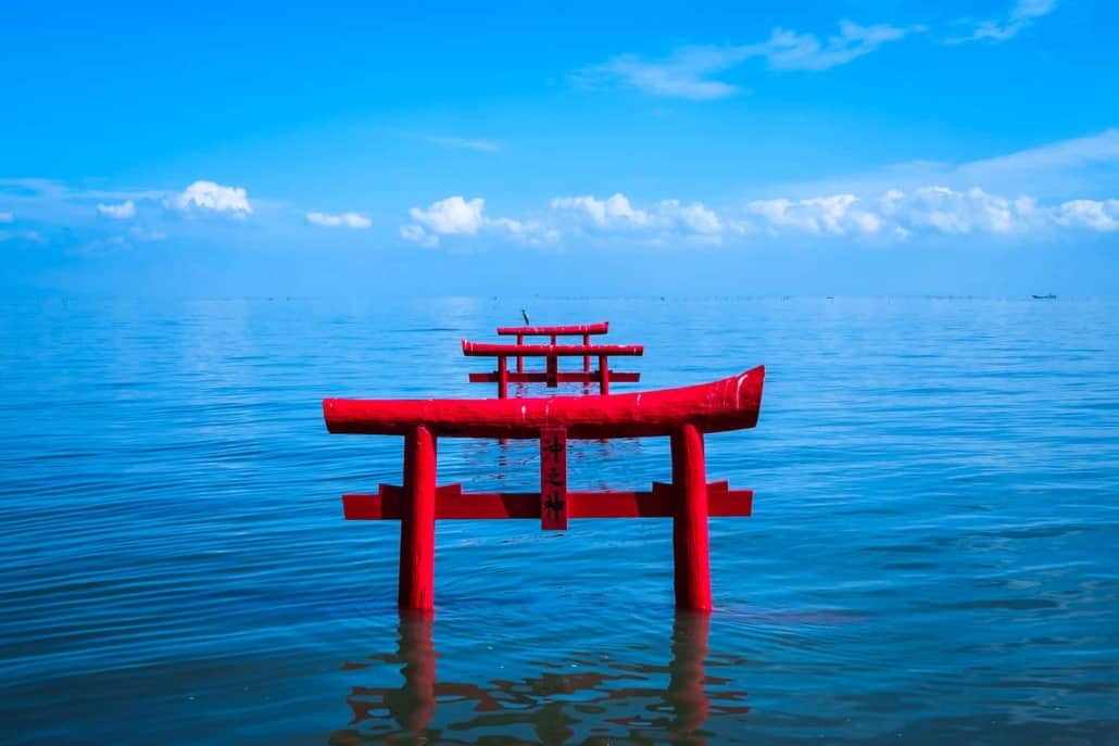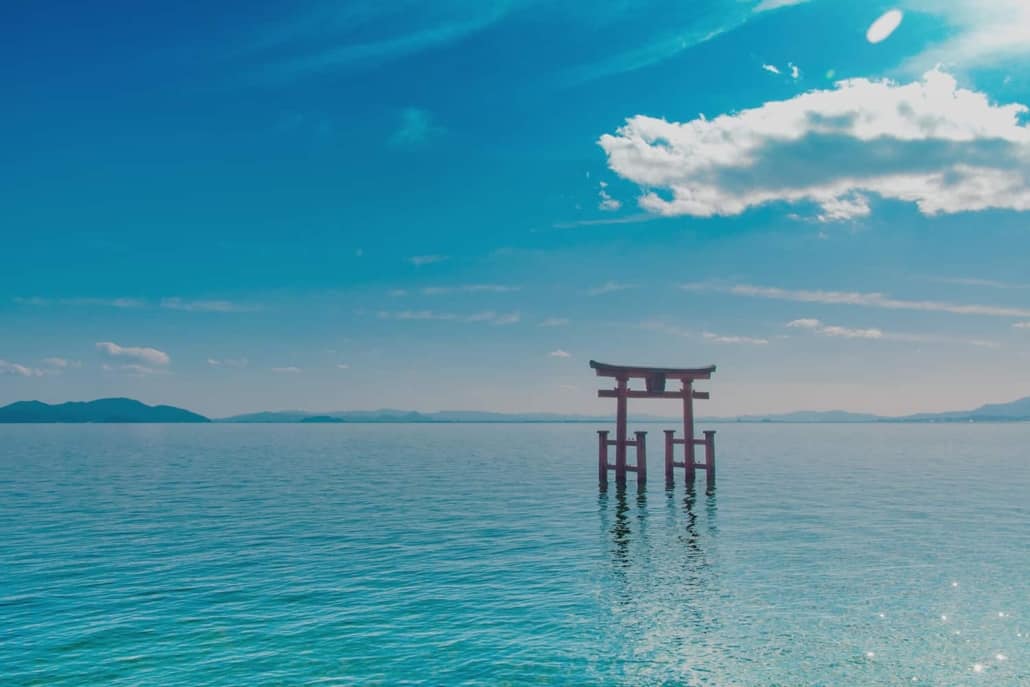 • Shirahige Shrine (Takashima, Shiga): The dreamlike white torii gate floating in Lake Biwa