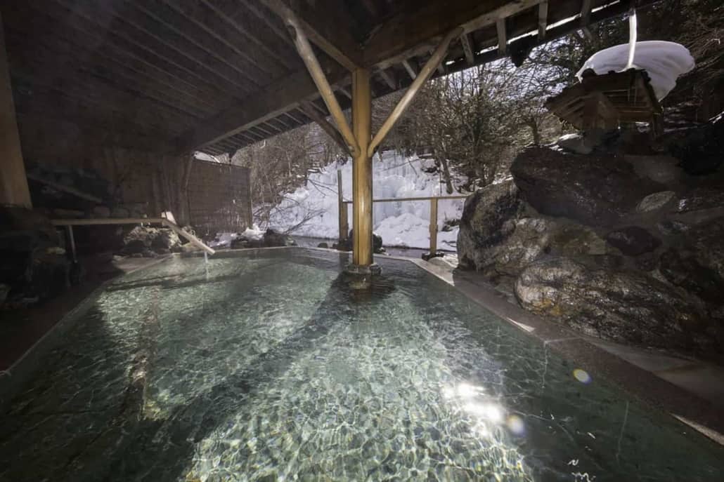 - Awanoyu Ryokan, Nagano: The indoor baths are separated, but the outdoor bath, the most famous with its small waterfalls, is mixed. Men must wear swimming trunks, but women are only allowed to cover themselves with a towel. From mid-November to April, this is also a good place near Tokyo to experience Yukimi-buro (onsen surrounded by snow).