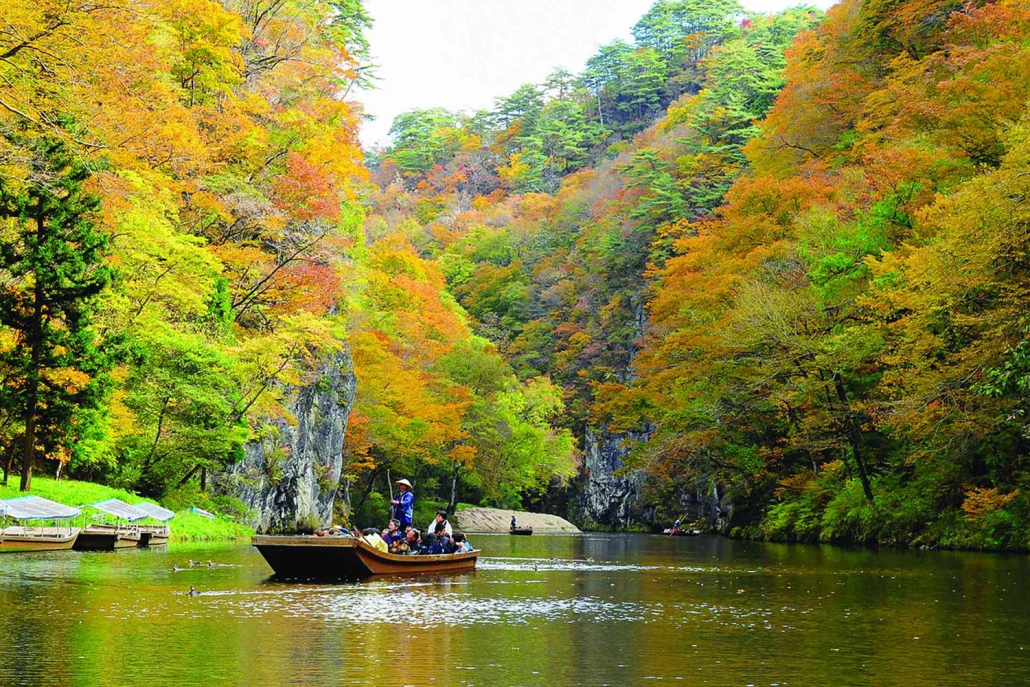 Geibikei Gorge: Situated in Iwate Prefecture, Geibikei Gorge is renowned for its dramatic limestone cliffs, lush greenery, and serene atmosphere. It’s particularly famous for its boat tours, where visitors can glide along the Satetsu River and admire the gorge’s natural beauty up close. The gorge is especially breathtaking during autumn when the foliage transforms into a vibrant tapestry of colors.