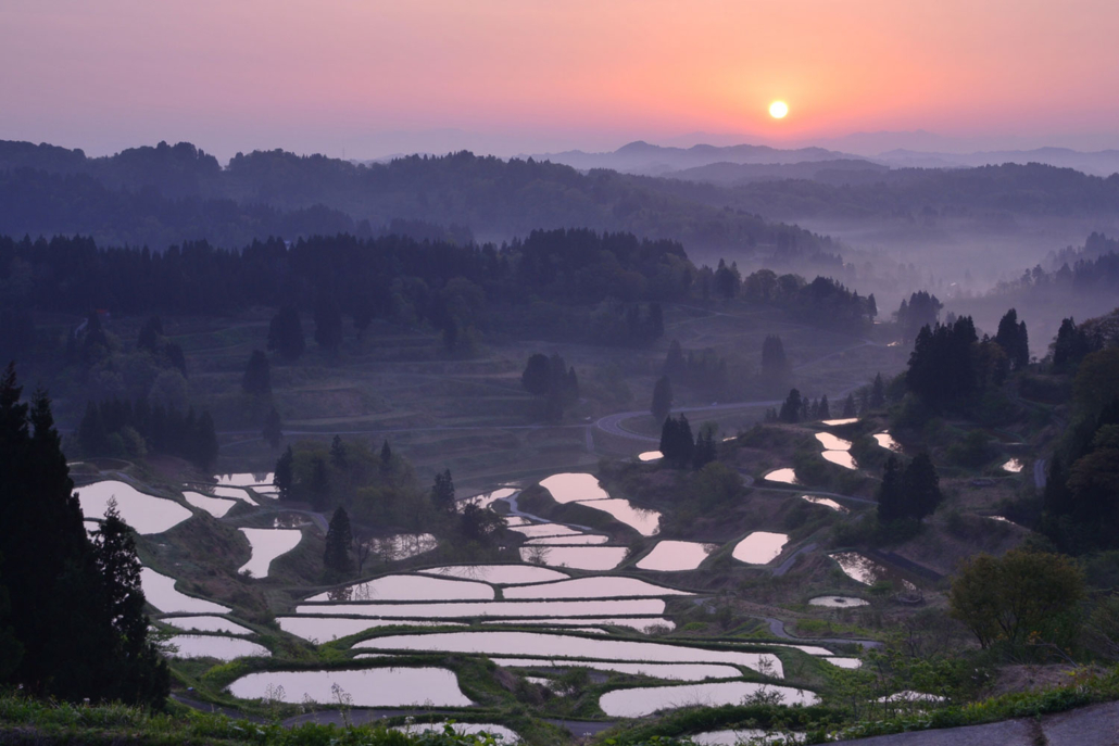 Hoshitoge Senmaida, Niigata – Also called “Mizu-kagami” (water mirror) because the water in the rice fields reflects light like a mirror.